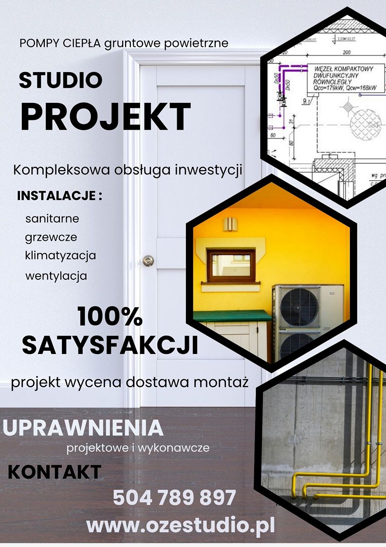 Firma OZE STUDIO PROJEKT posiada w ofercie usługę kompleksowej obsługi inwestycji budowlanej polegającej na projektowaniu, dostawie materiałów, sprzedaży urządzeń, montażu i uruchomieniu instalacji sanitarnej, instalacji grzewczej, w szczególności z wykorzystaniem pomp ciepła oraz klimatyzacji i wentylacji. Firma OZE STUDIO PROJEKT realizuje kompleksowe usługi projektowe i wykonawcze w zakresie zaprojektowania, wykonania, uruchomienia kompletnej, działającej instalacji zgodnej z założeniami projektowymi i oczekiwaniami klienta. Firma OZE STUDIO PROJEKT współpracuje z klientem od pomysłu do jego kompletnej realizacji, wszelkie ustalenia prowadzone są bezpośrednio z osobą odpowiedzialną za inwestycję, a doświadczony zespół inżynierów i specjalistów realizuje projekt zgodnie z harmonogramem, z wykorzystaniem wybranych przez klienta materiałów i uzgodnionych technologii. Firma OZE STUDIO PROJEKT specjalizuje się w wykonywaniu instalacji grzewczych z zastosowaniem pomp ciepła, które wykazują najwyższą efektywność ogrzewania zimą, a chłodzenia latem. Firma OZE STUDIO PROJEKT oferuje dostawę niezawodnych pomp ciepła wraz z uslugą montażu oraz kompleksową realizacją inwestycji zmierzającej do uruchomienia dowolnego rodzaju pomp ciepła: gruntowe pompy ciepła, powietrzne pompy ciepła. Kompleksowe usługi projektowe i wykonawcze w firmie OZE STUDIO PROJEKT obejmują wszelkie instalacje: wykonanie instalacji grzewczej, w tym projektowanie systemu centralnego ogrzewania, węzłów cieplnych, ogrzewania podłogowego, wybór i zaprojektowanie kotłowni: gazowych, olejowych, na paliwa stałe, obliczanie strat ciepła, zastosowanie systemów odzysku ciepła, wykonanie instalacji sanitarnej: kanalizacji deszczowej, kanalizacji sanitarnej, sieci i przyłączy wodociągowych oraz klimatyzacji i wentylacji w pełnym zakresie. Firma OZE STUDIO PROJEKT tworzy projekty instalacji w oparciu o wieloletnie doświadczenie, z wykorzystaniem nowoczesnych technologii, materiałów oraz technik wykonania zapewniających najkorzystniejsze rezultaty w postaci oszczędności ciepła, sprawnego systemu wentylacji i rekuperacji, niższych rachunków oraz spokoju. Firma OZE STUDIO PROJEKT posiada uprawnienia do projektowania, wykonywania instalacji i kierowania robotami, z klientem współpracuje jedna osoba nadzorująca daną inwestycję: od projektu po uruchomienie gotowej, sprawnej i prawidłowo działającej instalacji. Współpraca z zespołem doświadczonych inżynierów, ekspertów i doskonale zgranych ekip technicznych z OZE STUDIO PROJEKT zapewnia sprawną, terminową i wykonaną zgodnie z projektem instalację w budynkach jednorodzinnych, wielorodzinnych i obiektach użyteczności publicznej, obiektach komercyjnych i przemysłowych. Zachęcamy do zapoznania z ofertą usług projektowych i wykonawczych dla instalacji grzewczych, sanitarnych, wentylacji i klimatyzacji na stronie www.ozestudio.pl lub kontaktu z zespołem pod numerem 504 789 897.